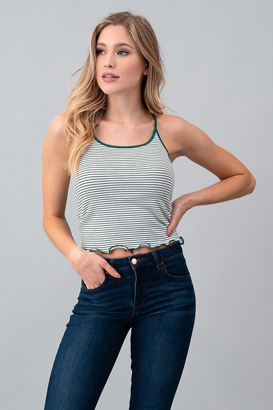 Exposure Stripe Lettuce Hem Cotton Cami