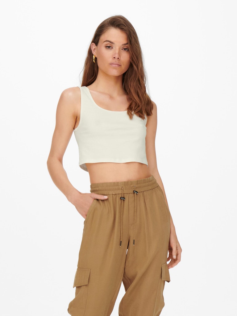An everyday sleeveless tank top that can be worn on it's own or as a fantastic layer piece. This tank top has a square-scoop neck and thick straps.