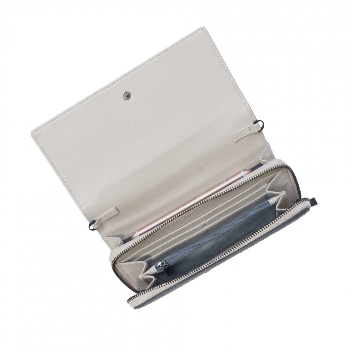 Interior: one zipper compartment, onelarge compartment, 8 credit card slotsand two bill slots