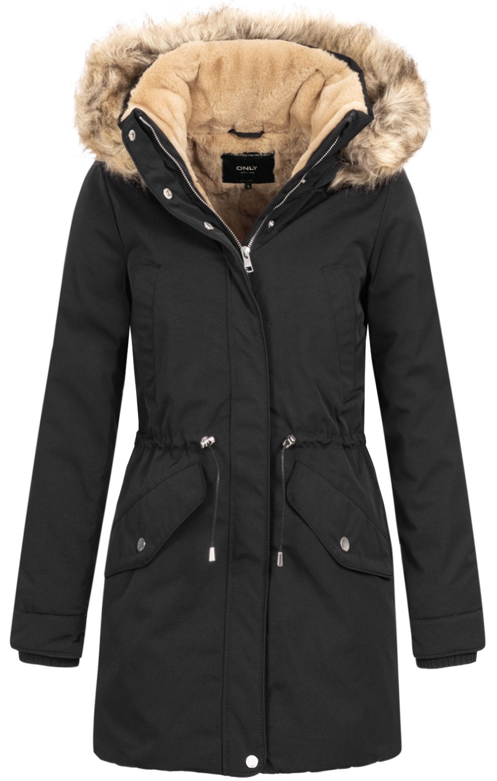 The Alina parka has a super soft faux fur lined hood as well as a fur collar and inner panels to keep you extra snug on cold days. The faux fur trim on the hooded winter coat is detachable. It has concealed button and zipper front closure as well as a waist drawstring. Also, it has two chest pockets and two front pockets. Ribbed wrist cuffs help keep the cold air out.